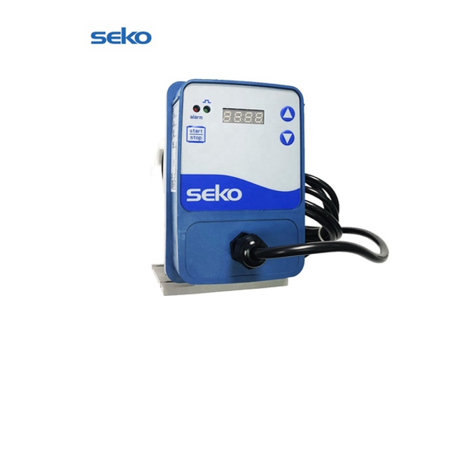 賽高SEKO電磁隔膜計(jì)量泵KomBa系列是一款基于微處理器控制的數(shù)顯式電磁隔膜計(jì)量泵, 具有操作簡(jiǎn)單、 運(yùn)行穩(wěn)定的特點(diǎn)。是一種能夠精確控制流量和壓力的泵,主要用于化工、環(huán)保、市政水處理和廢水處理, 二氧化氯投加、反滲透、 食品、 飲料和制藥行業(yè)等行業(yè)的液體定量輸送。 分別為DMS、DML、DMC和DMM,流量范圍從1到9升/小時(shí),最大壓力可達(dá)10bar。DML系列通過(guò)控制面板上的按鍵手動(dòng)調(diào)節(jié)流量,還擁有泵運(yùn)行/停止LED指示,還可顯示頻率百分比(P%) 和沖程數(shù)(F),另外帶有液位探頭接口。