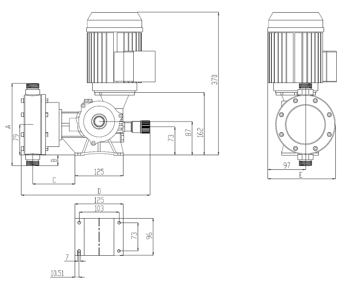 側(cè)面圖                                                            泵頭正面圖