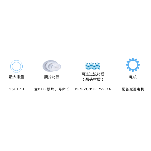 PVC、PVDF、PTFE、SS316各種泵頭材質(zhì),可以適用于各種藥液的投加。